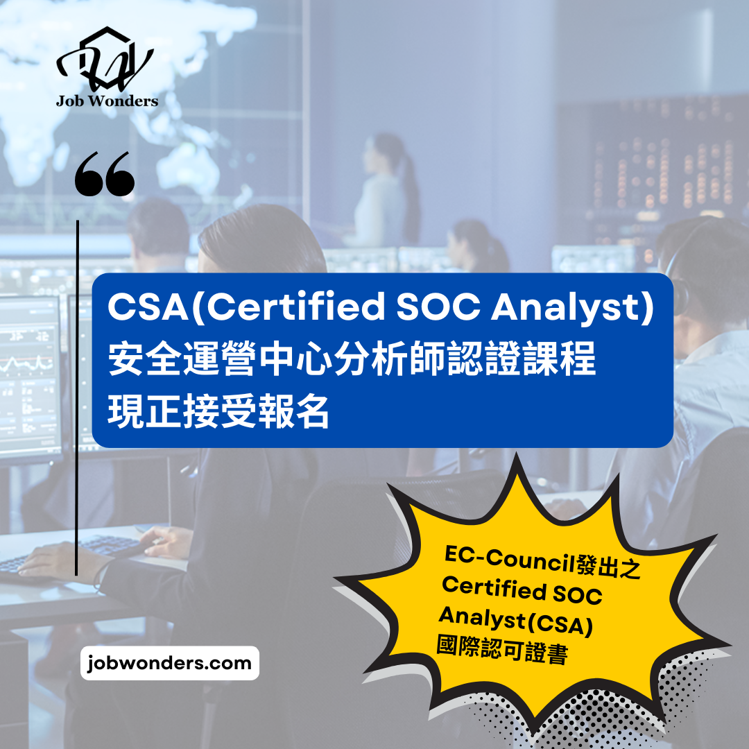 - EC-Council發出之Certified SOC Analyst(CSA)國際認可證書