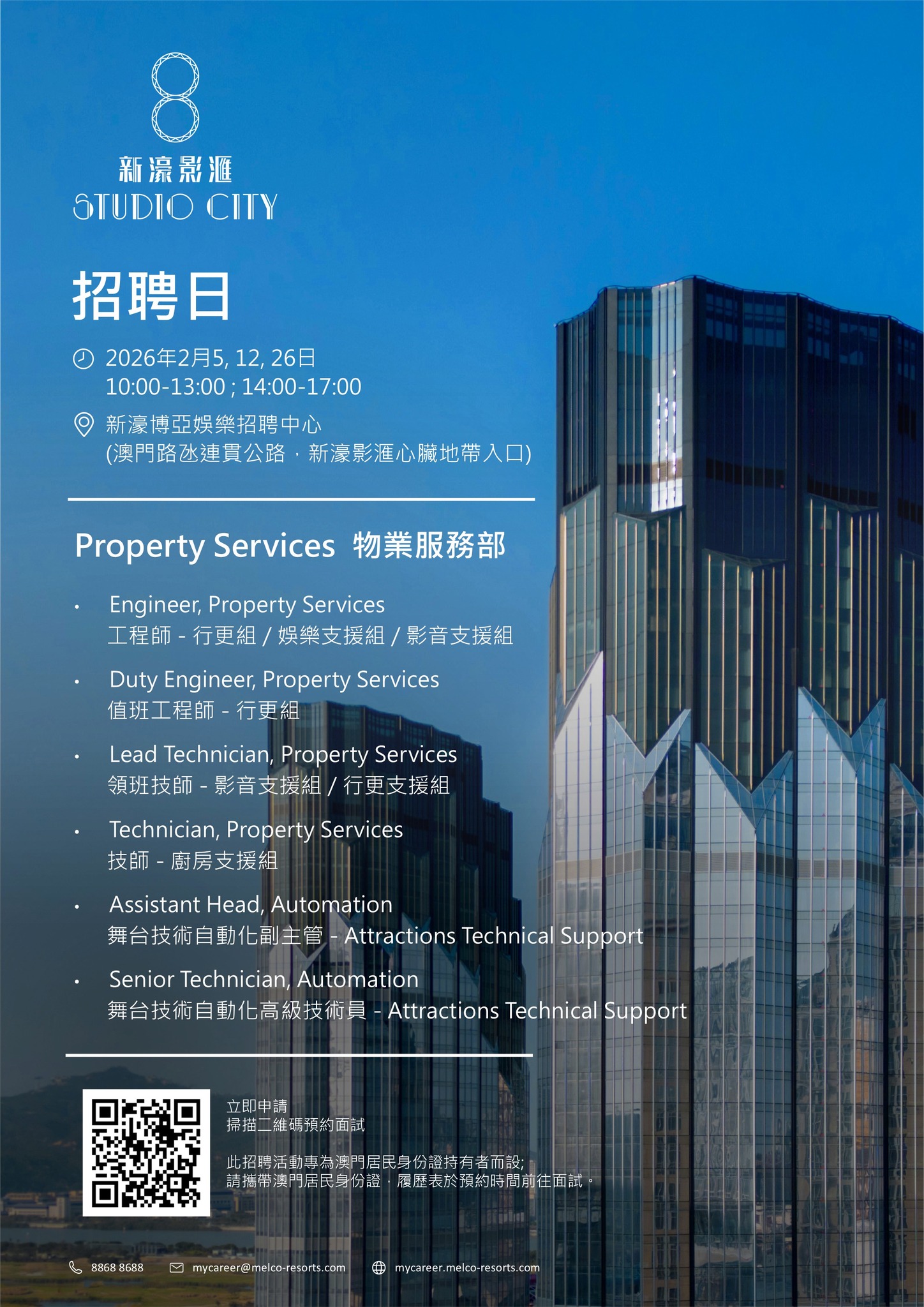地點 : 新濠博亞娛樂招聘中心 (新濠影滙心臟地帶入口)