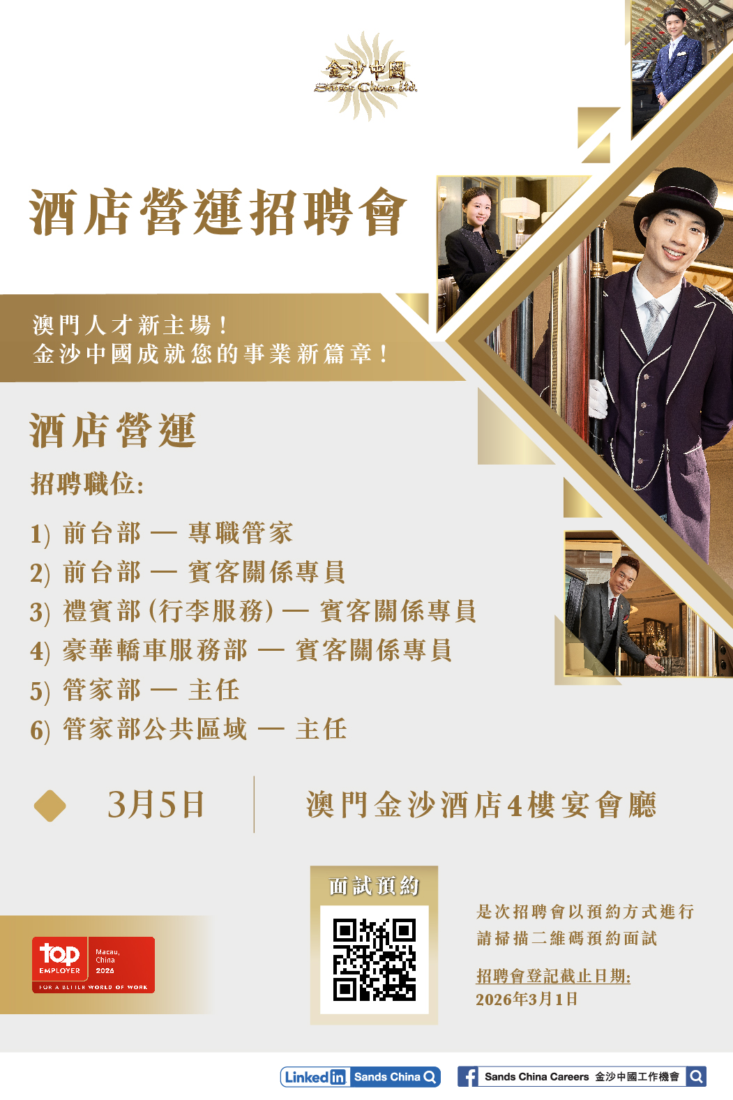 金沙中國招聘專場系列 - 酒店營運部 (3月5日)