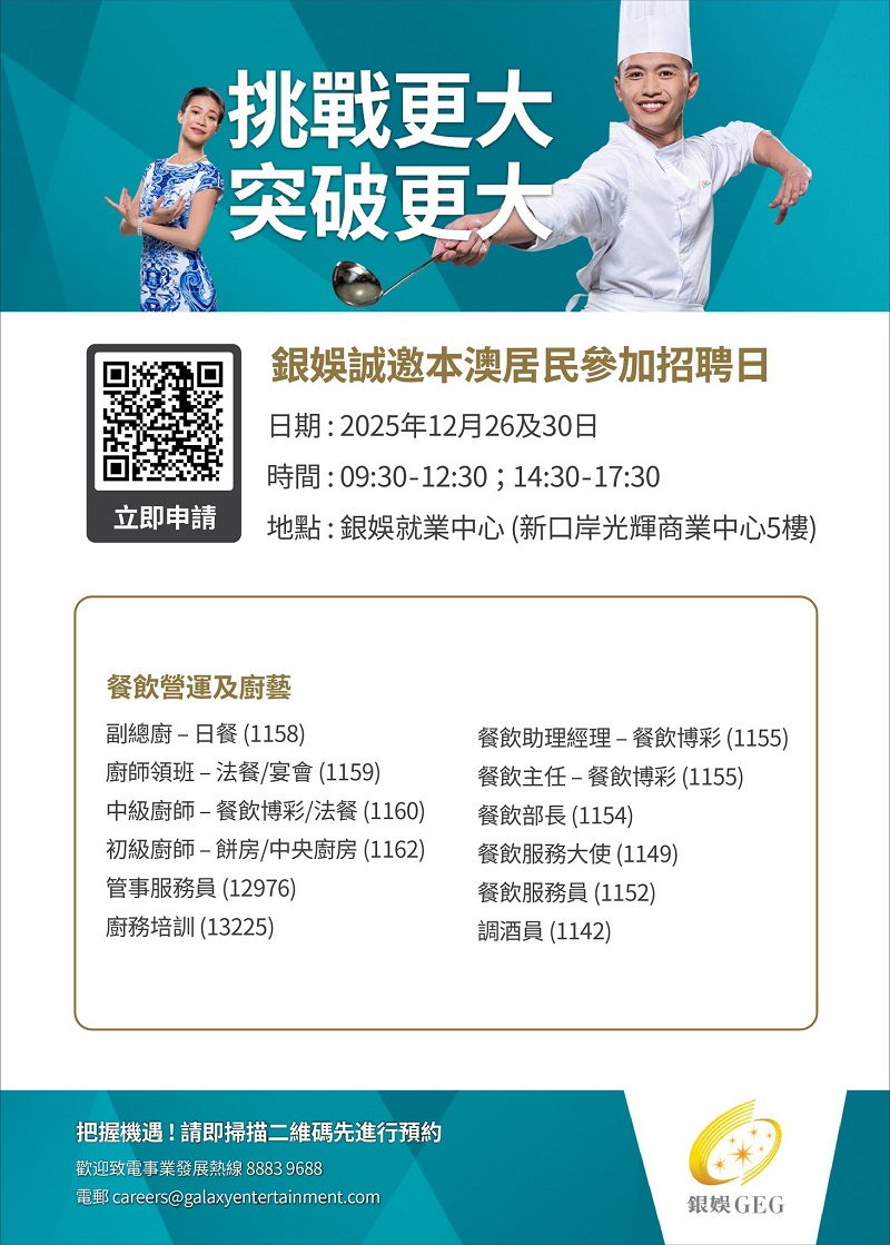 誠邀本澳居民積極參與,切勿錯失良機,為自己的事業揭開新一頁。