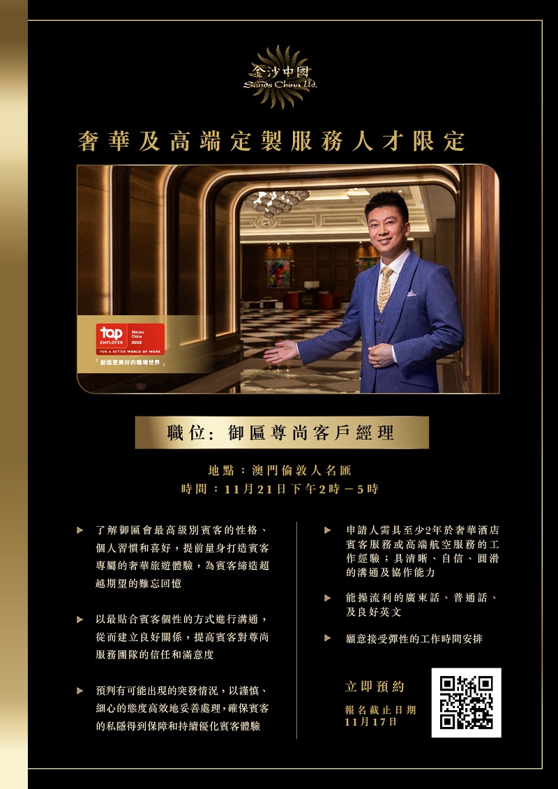 即刻報名:https://hk.venetianmacao.com/internal/202511-fo-recruitment.html