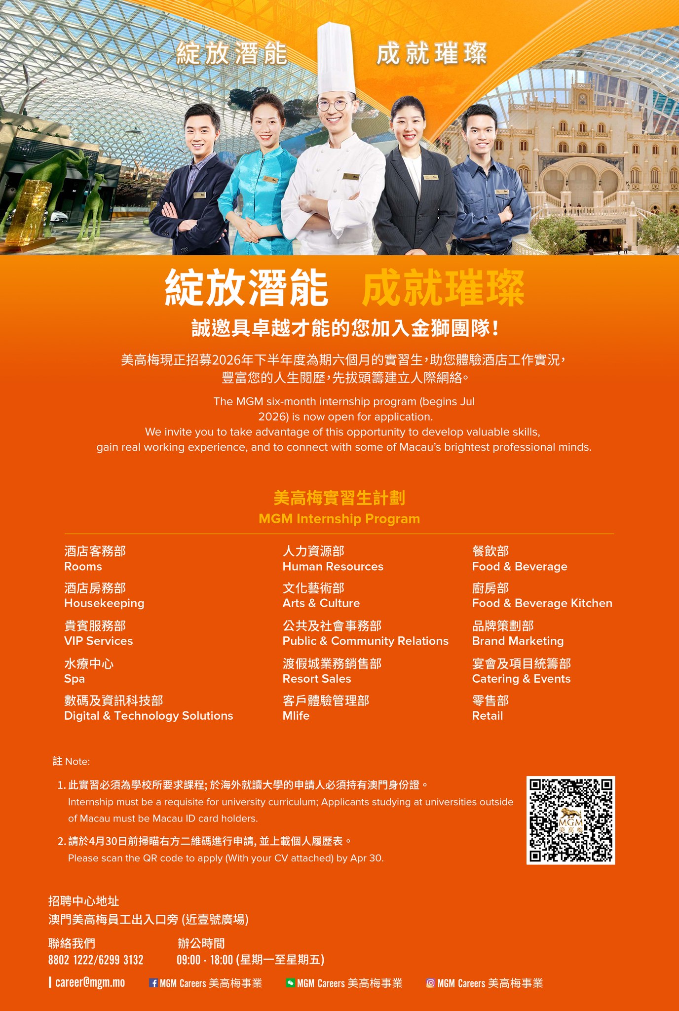 把握機會!請立即掃瞄二維碼申請職位,或是將履歷發送至2049recruitment@mgm.mo