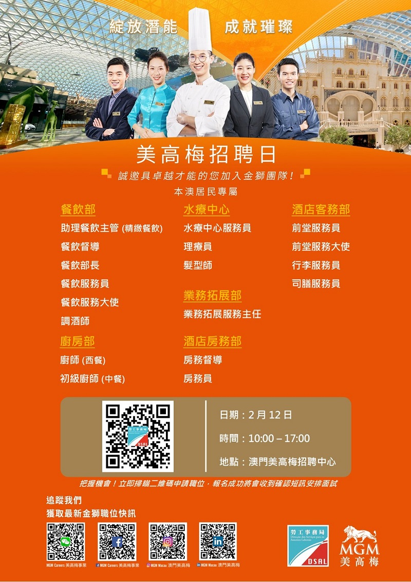 地點﹕澳門美高梅招聘中心